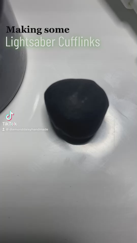 Add a spark of fun to your outfit with these handmade Lightsaber Cuff Links crafted from polymer clay. Designed to glow in the dark, they bring a playful twist to your style—perfect for fans who want to showcase their love for epic galactic battles, even when the lights go out.